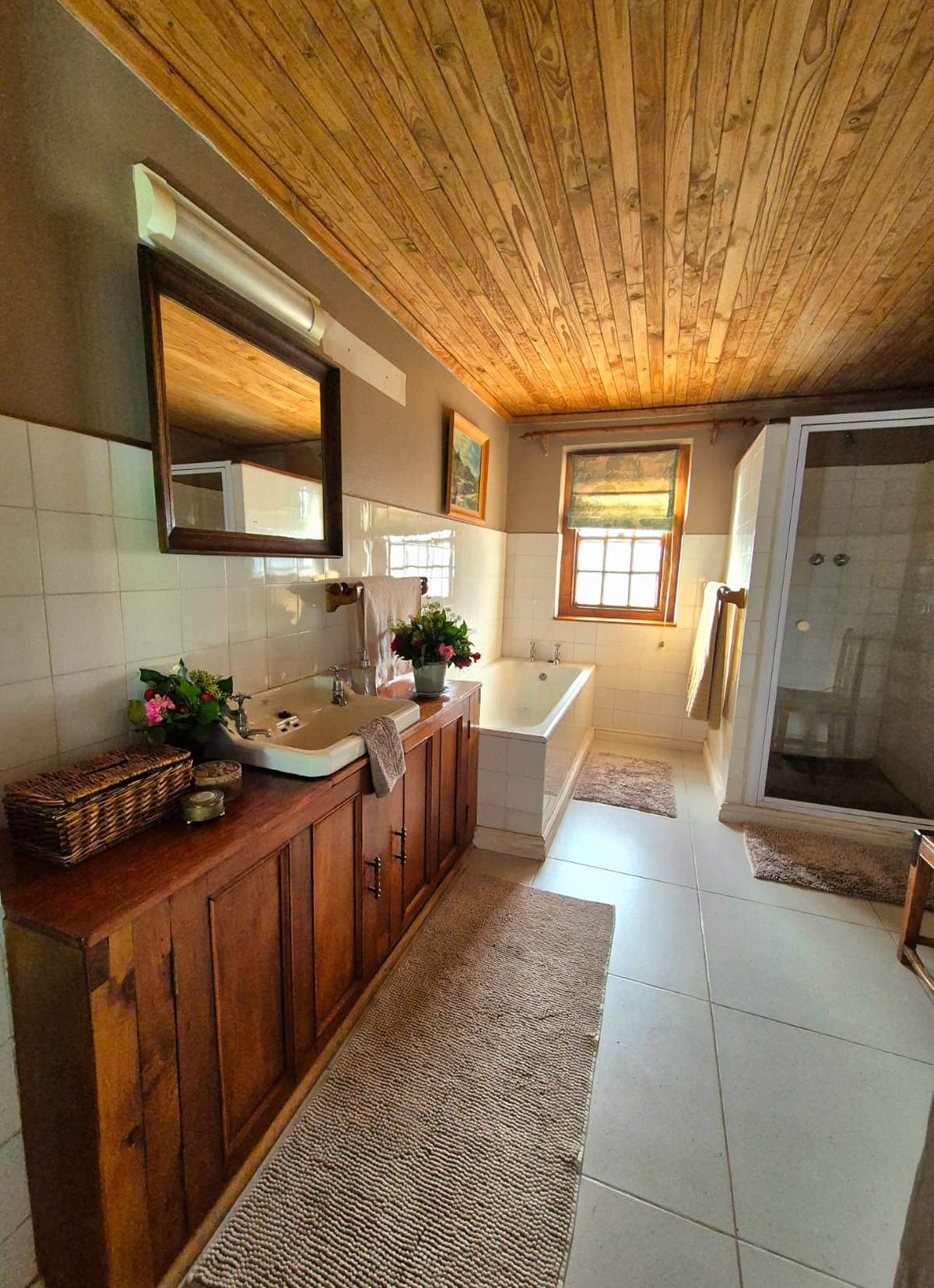 The Guesthouse consists of two bedrooms, one double room with on suite bathroom and a twin room with bathroom. A kitchen, scullery, dining room, sunroom and DSTV complete this beautiful house.